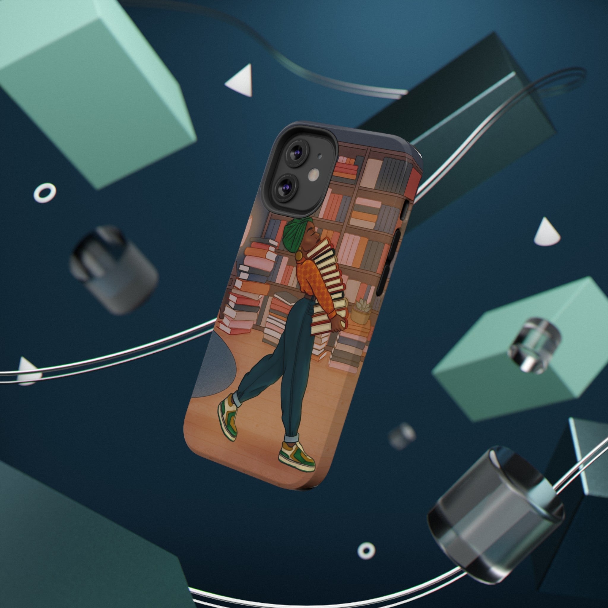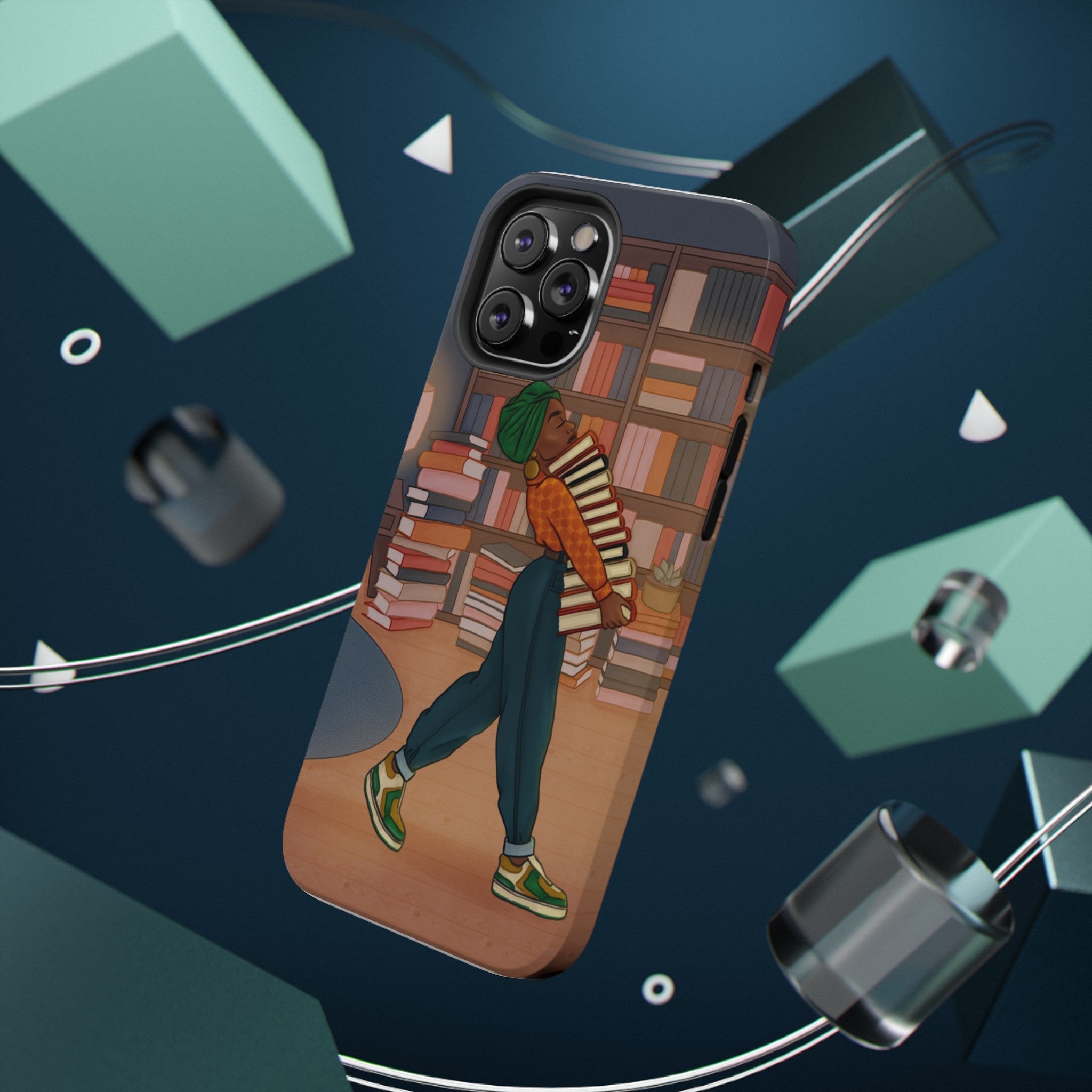 Introducing our Black Girl Book Stacks Impact-Resistant Phone Case 2, featuring a beautifully hand-drawn and original illustration. This unique phone case celebrates the beauty of black women. Made with impact-resistant materials, this phone case provides maximum protection for your device while showcasing a stunning piece of artwork. This case is not only functional but also a statement piece that promotes diversity and representation. Perfect for anyone looking to accessorize their phone with a meaningful and one-of-a-kind design. The cases also support wireless charging.