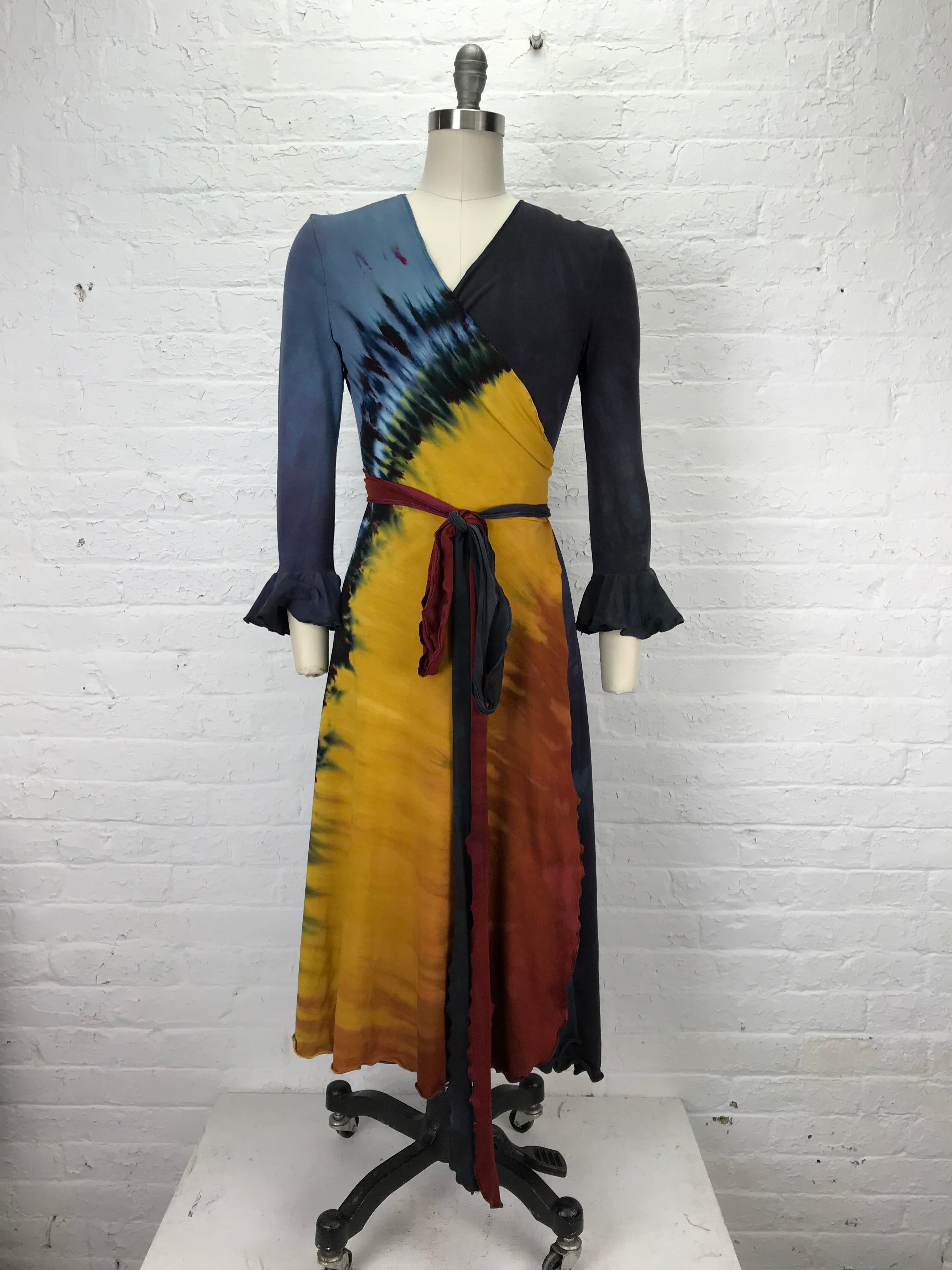 Wrap yourself in romance with our Flamenco Wrap Dress. The intense and intricate dyeing on this dress invokes the heat of the southern Spanish sunlight. These are truly unique and unrepeatable!
