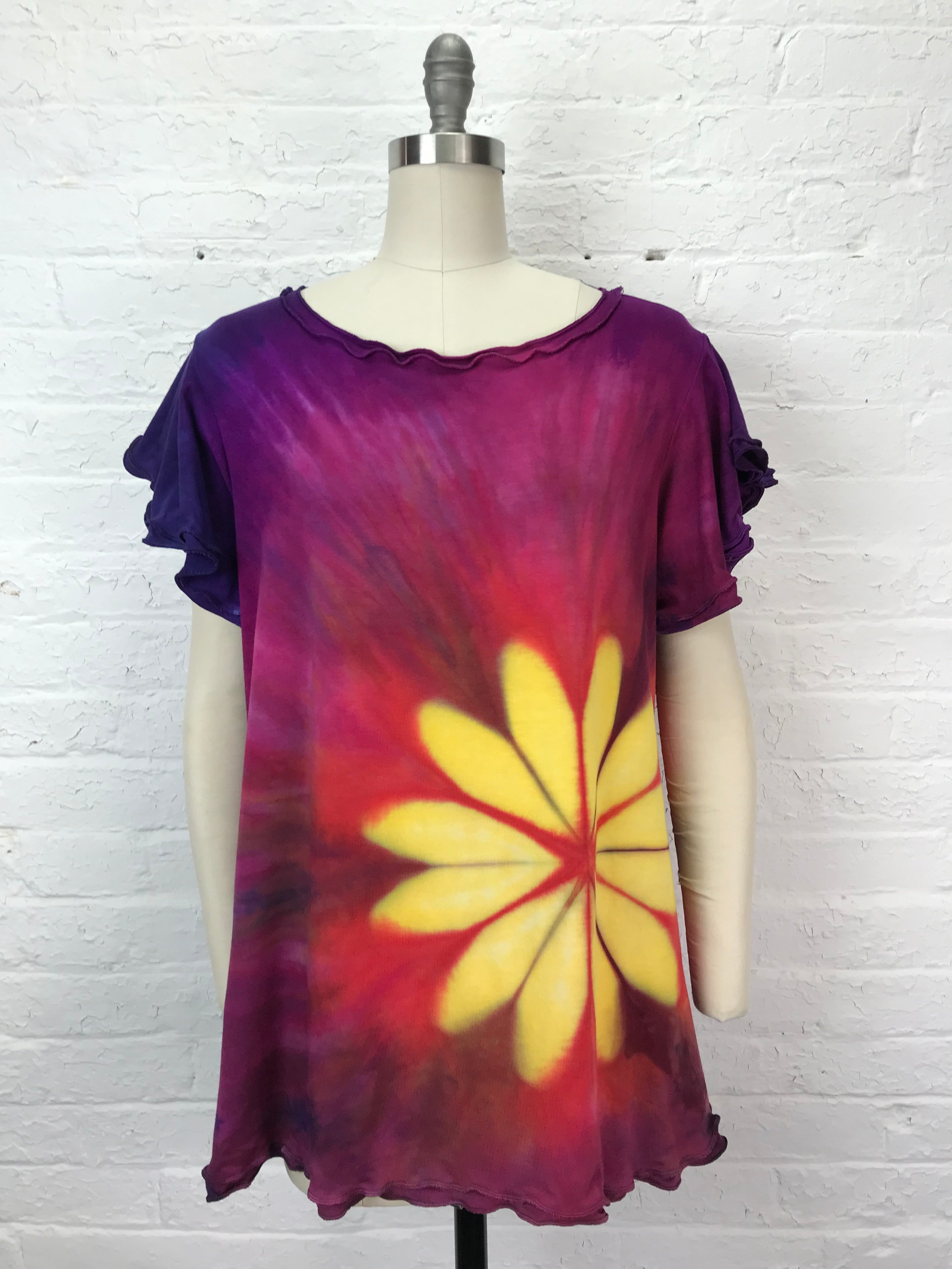 A looser fitting tunic top, fits like the Moon Tide Audrey but with a few style upgrades. Full flounce sleeves with a feminine double ruffle edge and a flattering curved hemline, looser and longer than the Jane and Isabella tops.