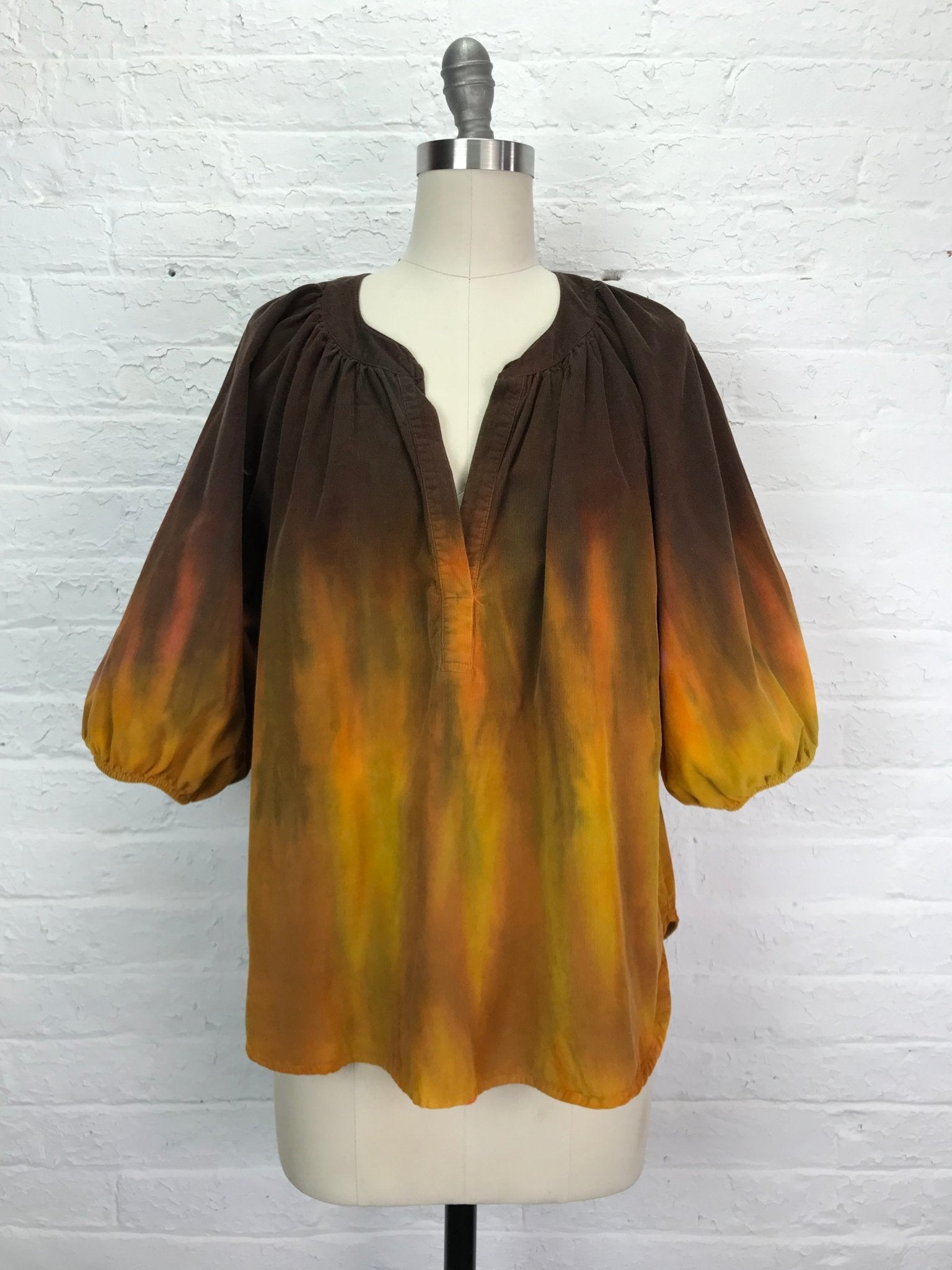 Corduroy Poet Sleeve Blouse in Chocolate Covered Toffee