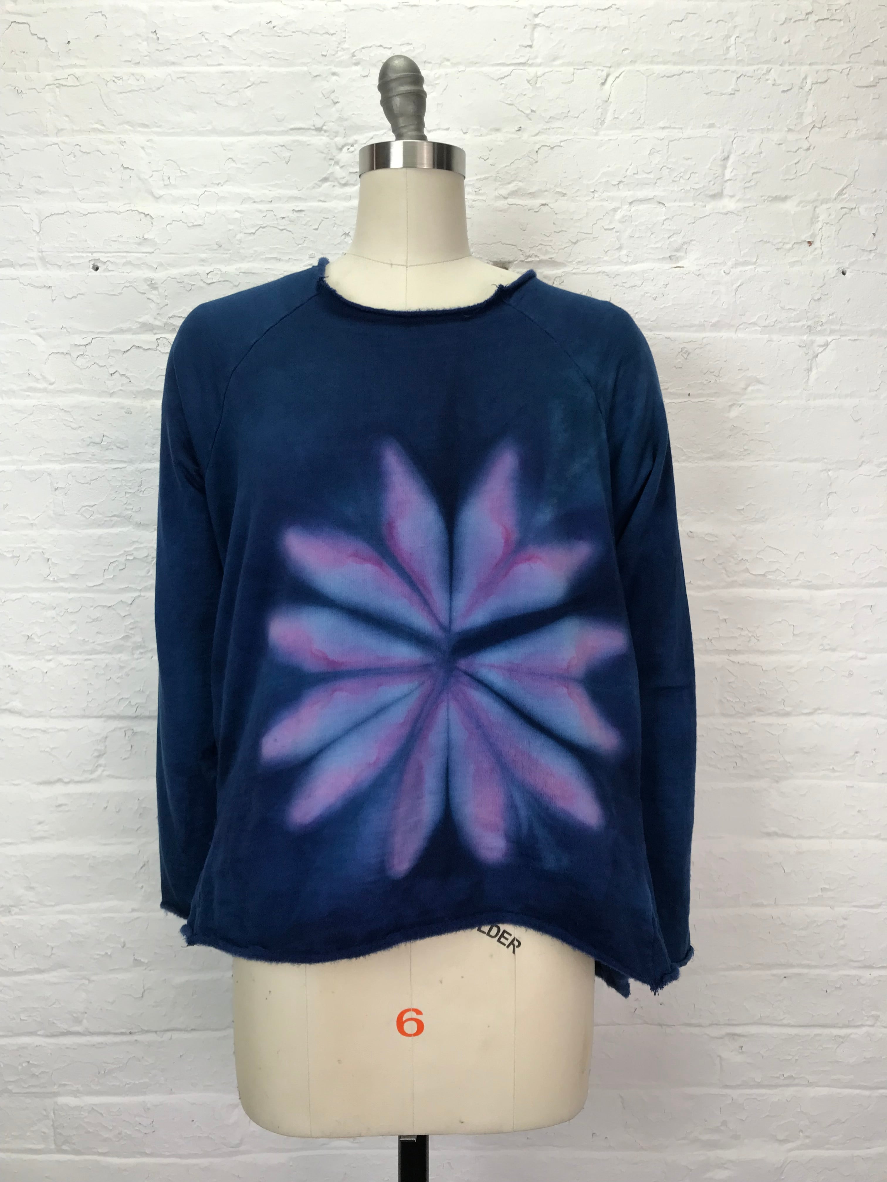 Fleece Raglan Sweatshirt in Blueberry Blossom with Pockets