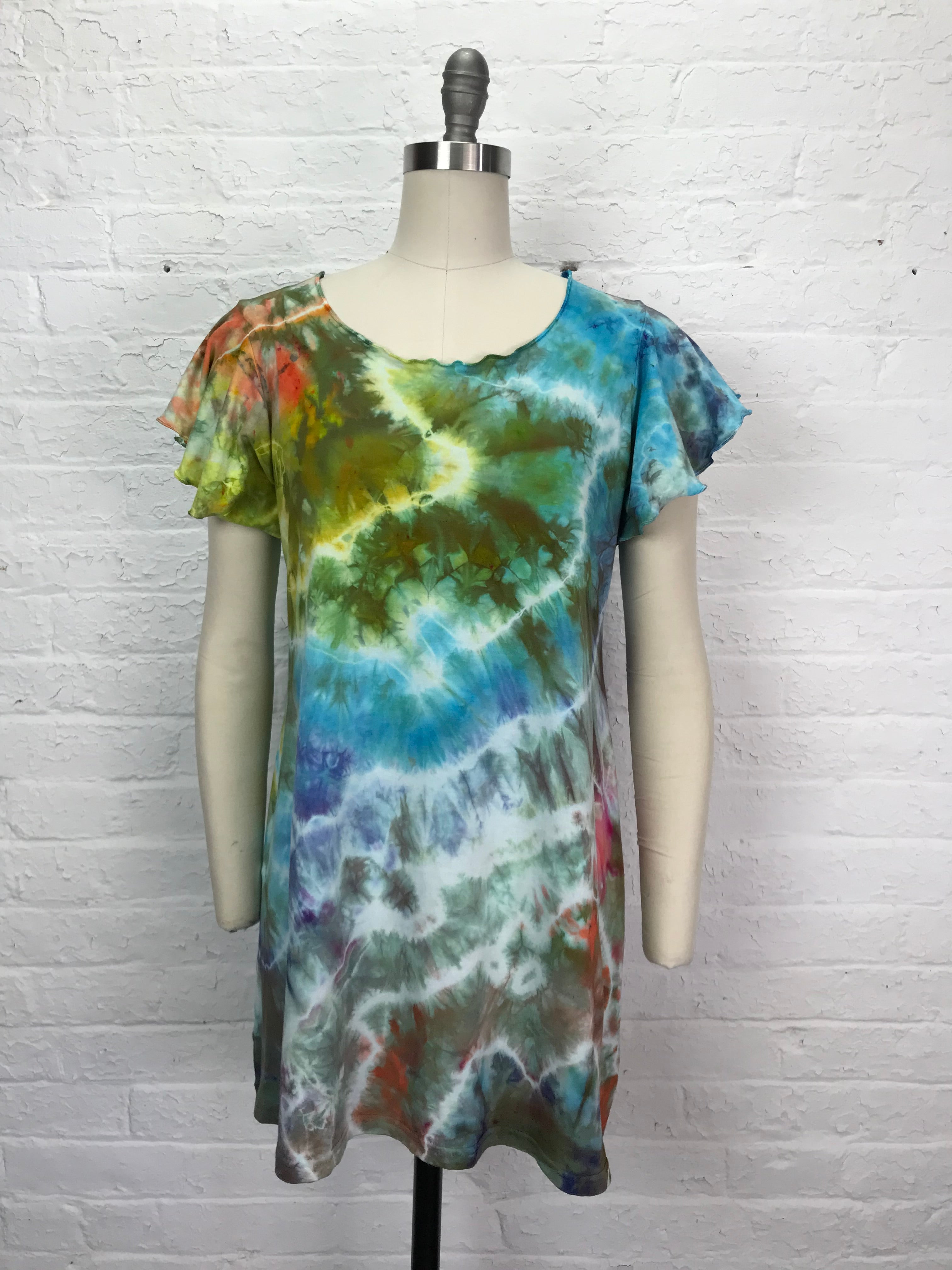 Flutter Sleeve Mini Dress in Spring Tulips - Medium