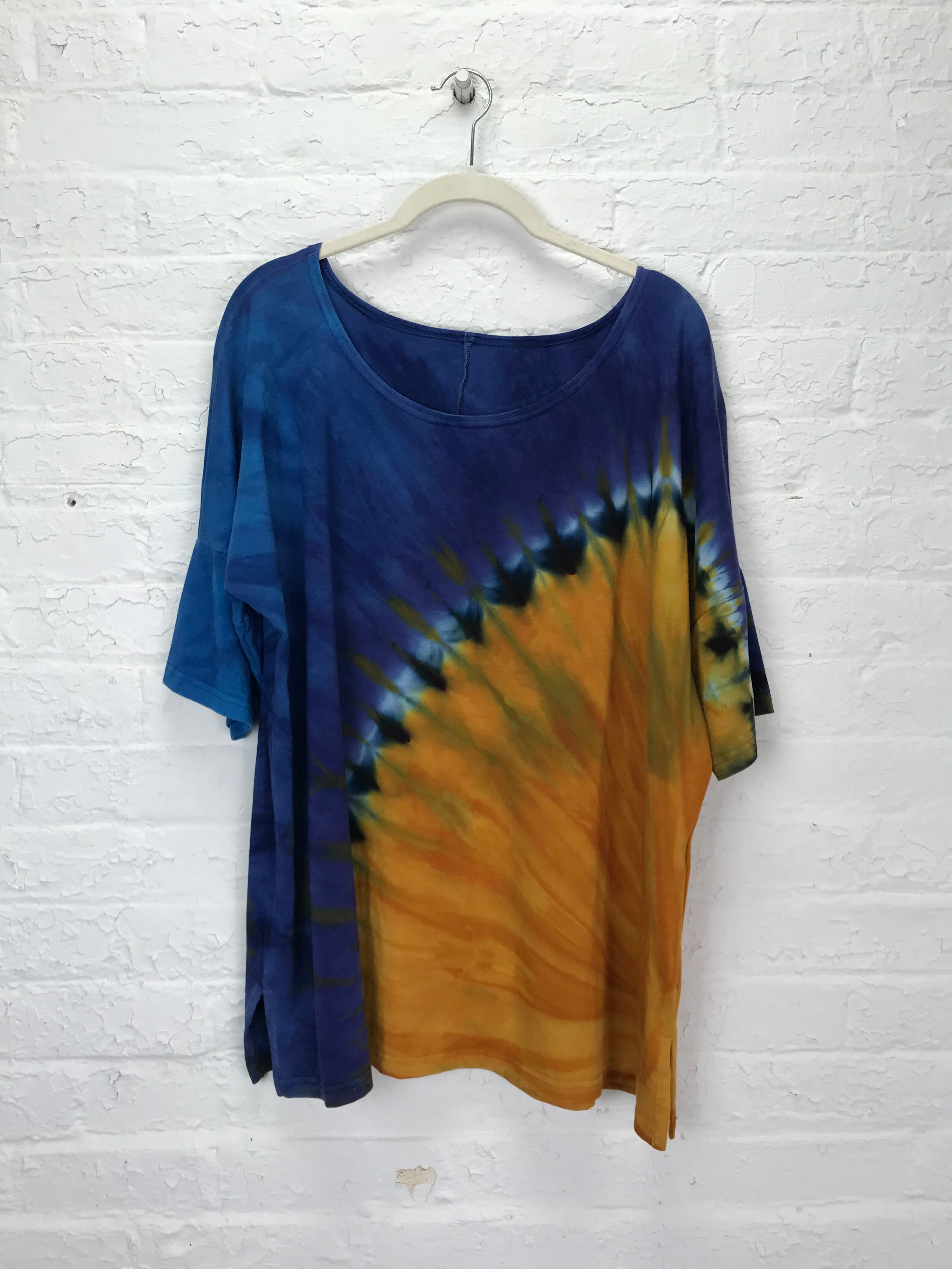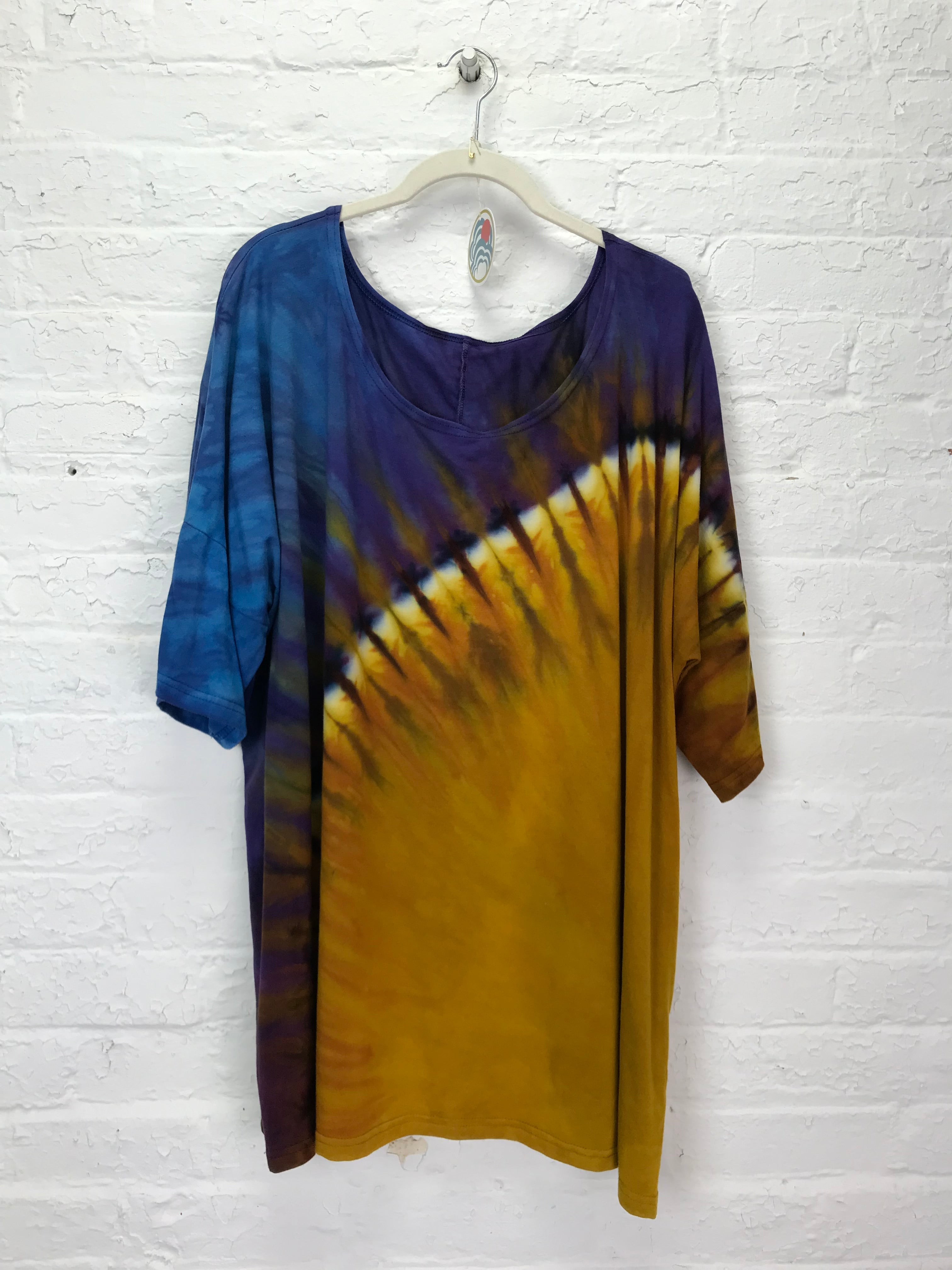 Grace is an oversized, very loose fitting tunic. Sizing is similar to Elsie, but Grace is longer with a side slit and elbow length sleeves.