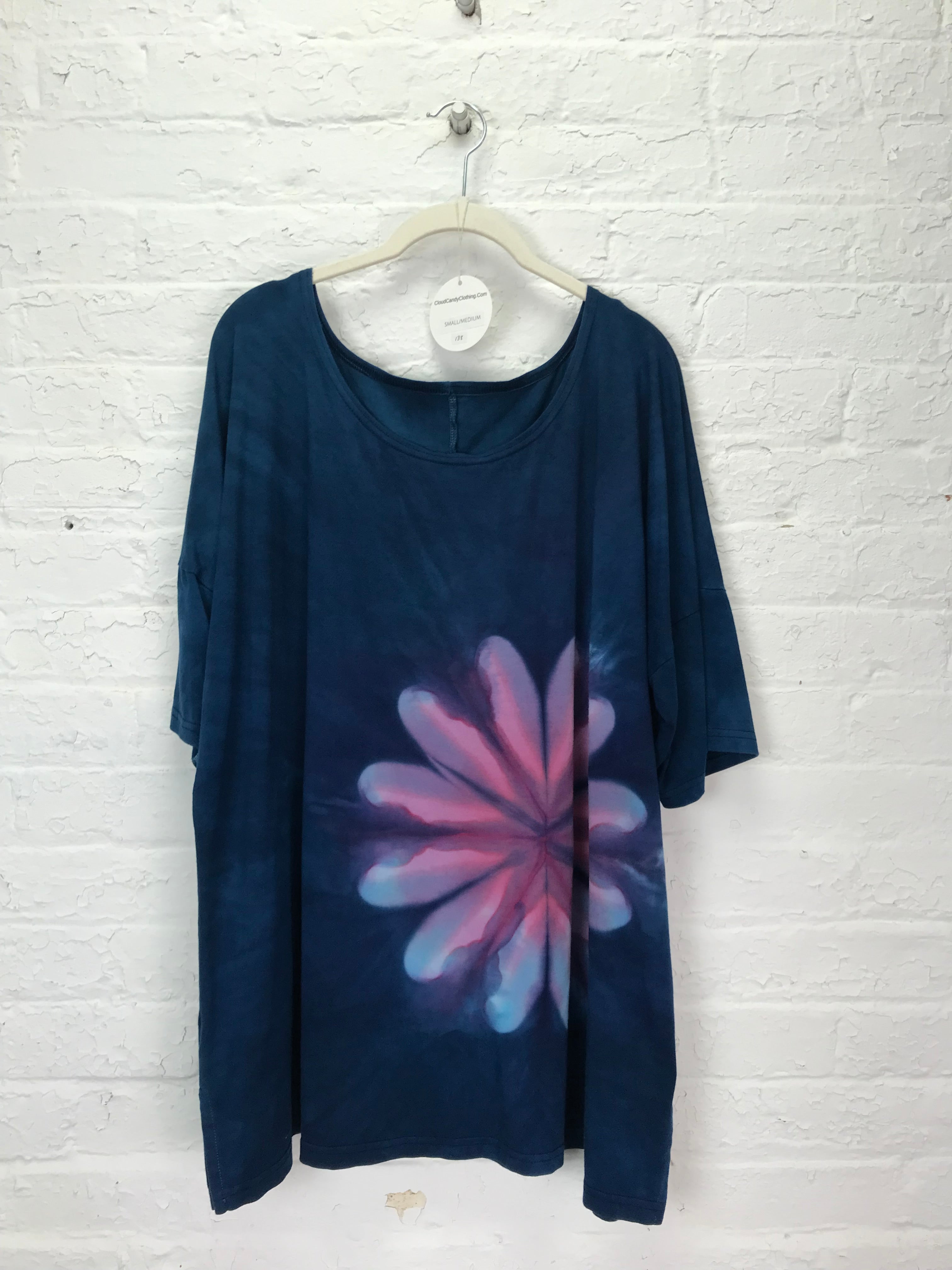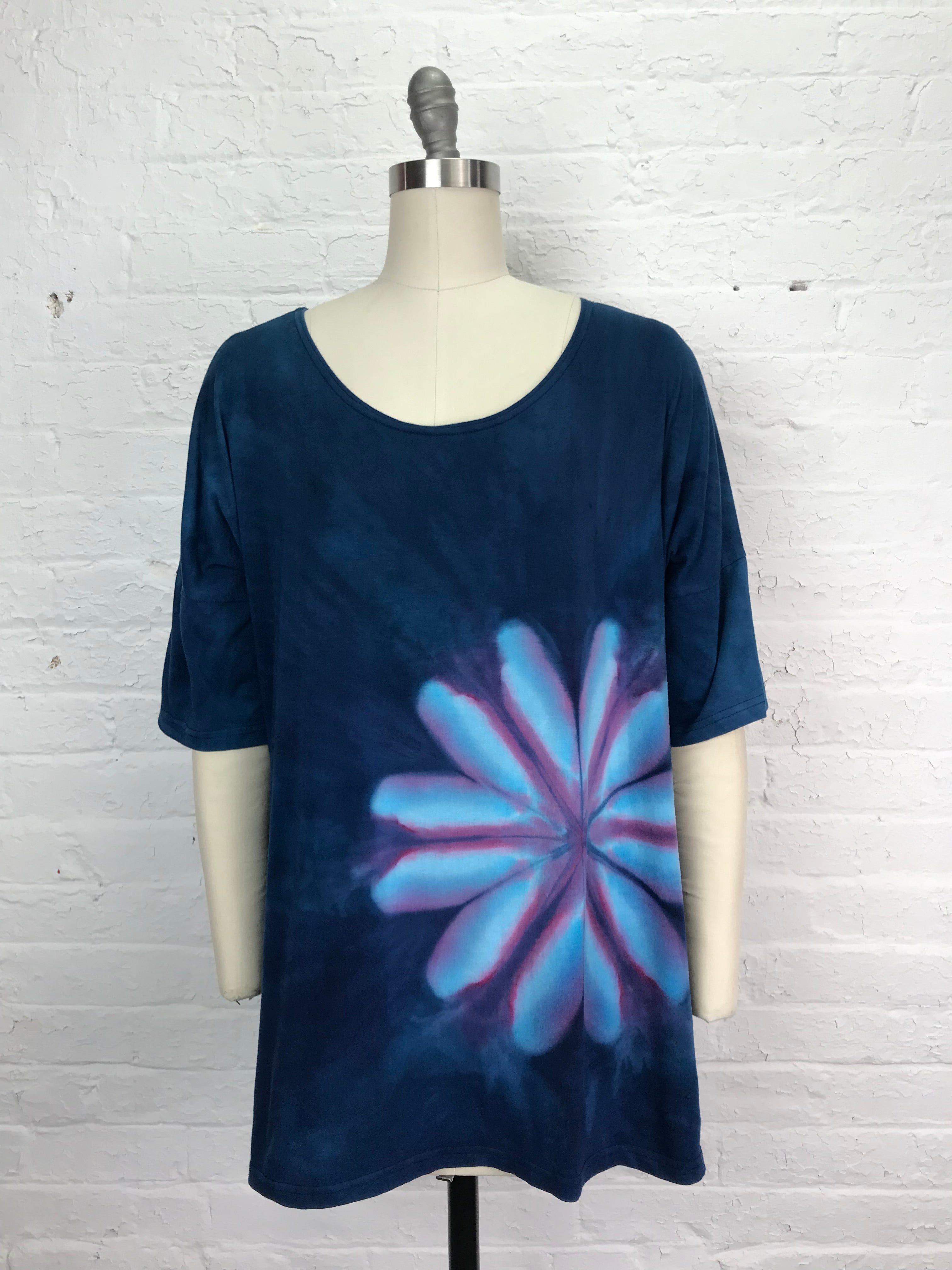 Grace is an oversized, very loose fitting tunic. Sizing is similar to Elsie, but Grace is longer with a side slit and elbow length sleeves.