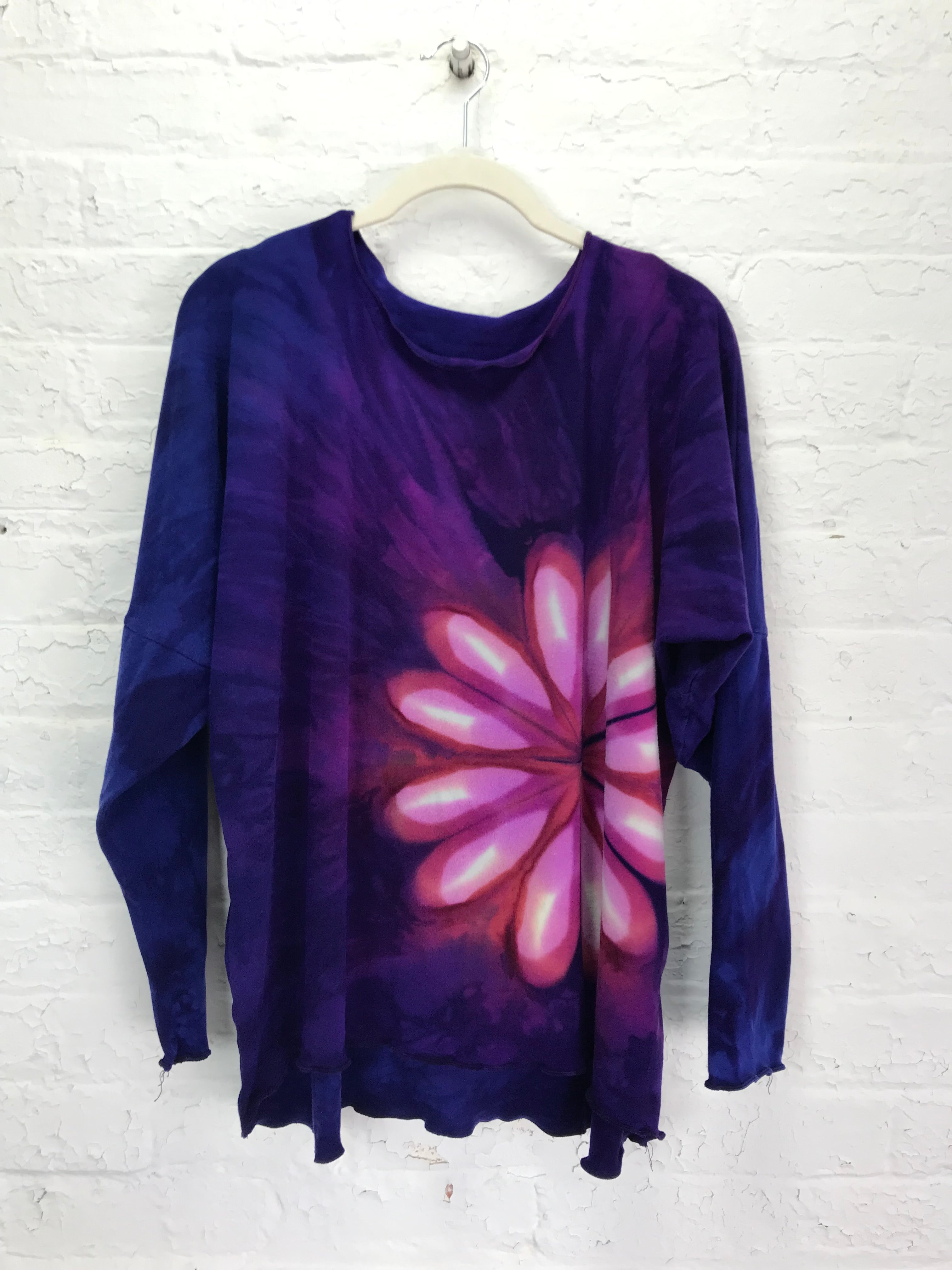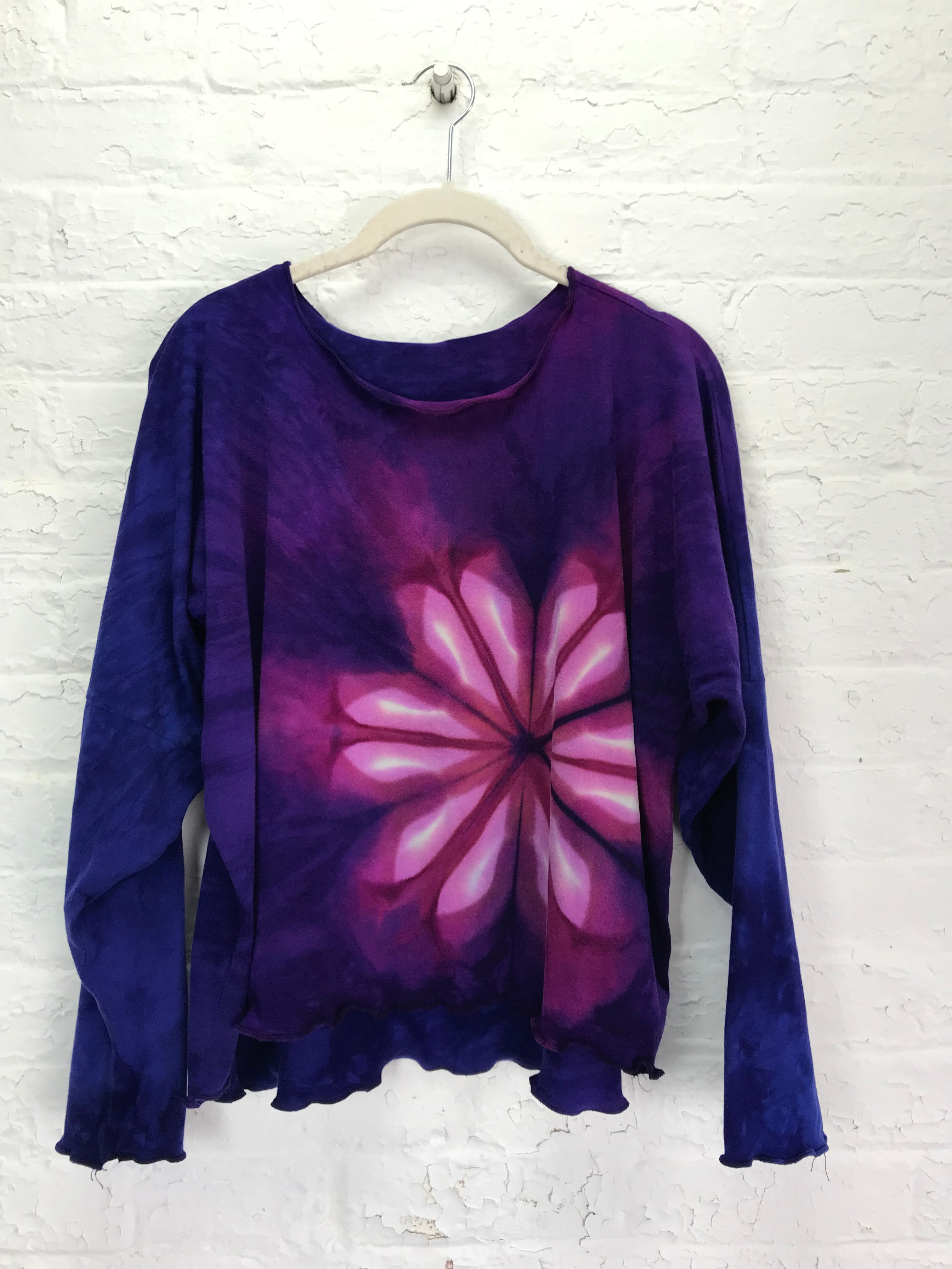 The Juni is a one size top that is done in two lengths, petite and shirt length and two sleeve lengths, short and long for a total of four options. Each one is finished with a purl stitch hem and is a little longer in the front than in the back.
