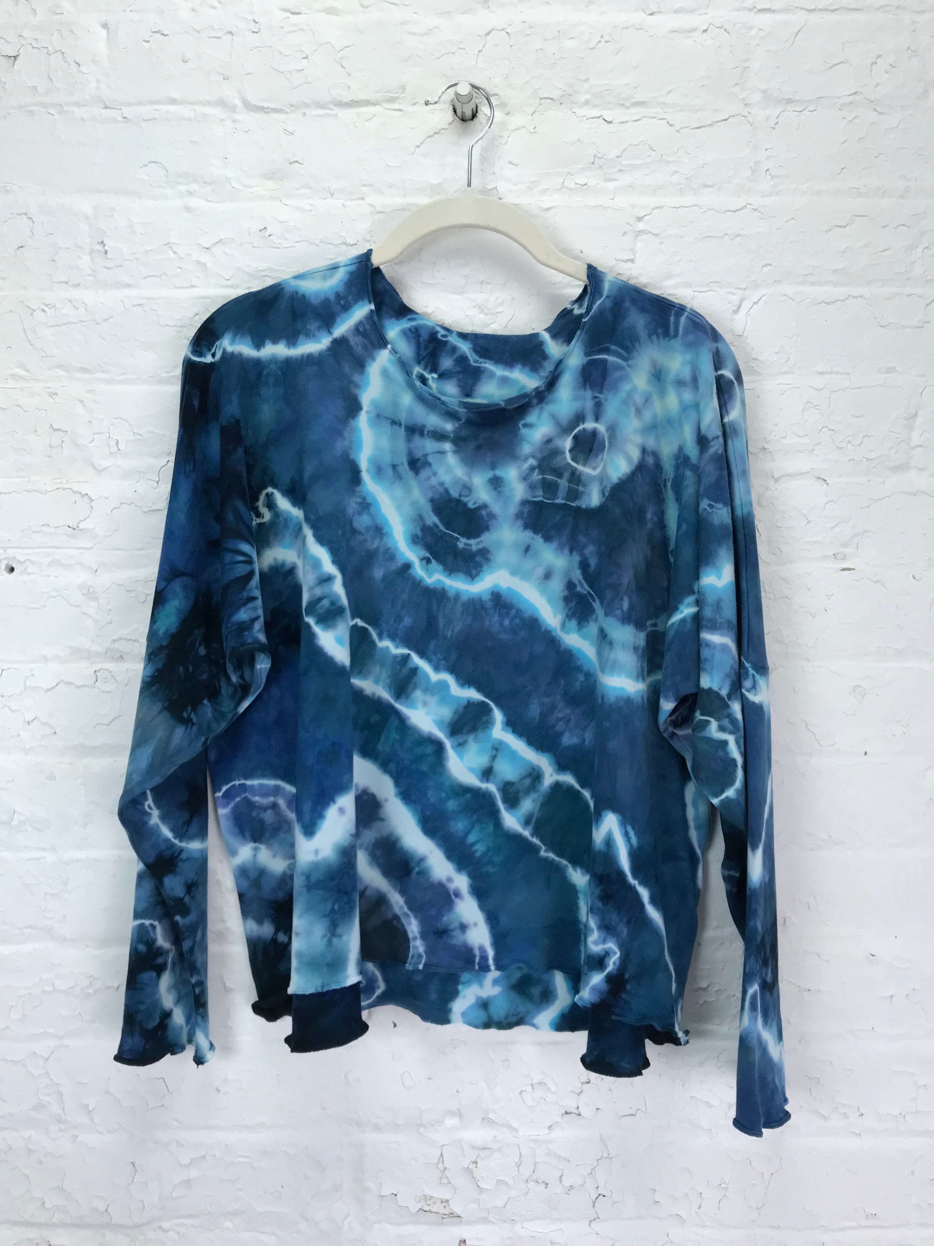The Juni is a one size top that is done in two lengths, petite and shirt length and two sleeve lengths, short and long for a total of four options.  Each one is finished with a purl stitch hem and is a little longer in the front than in the back.
