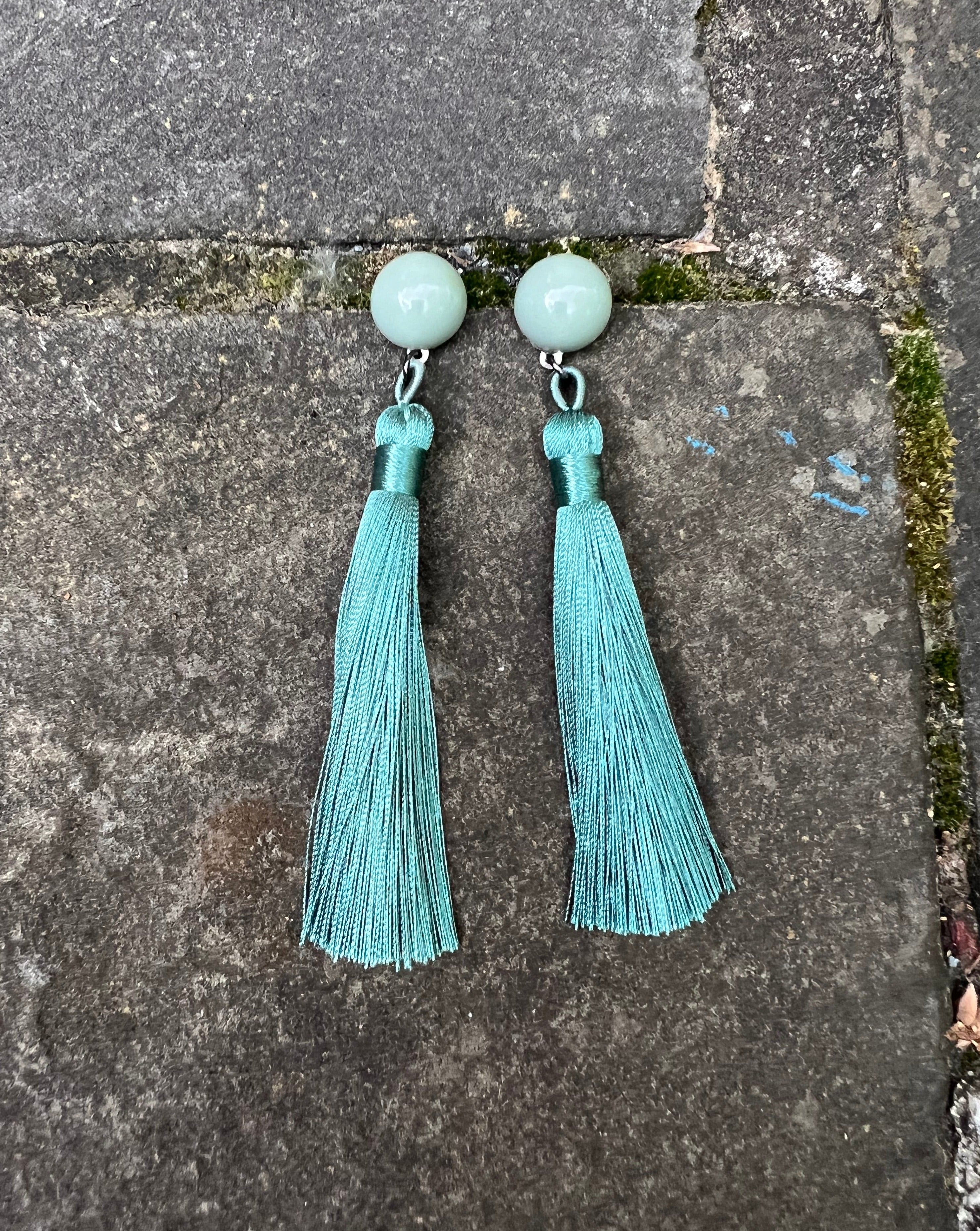 Infinity Knots - Seafoam Green Tassel Earrings