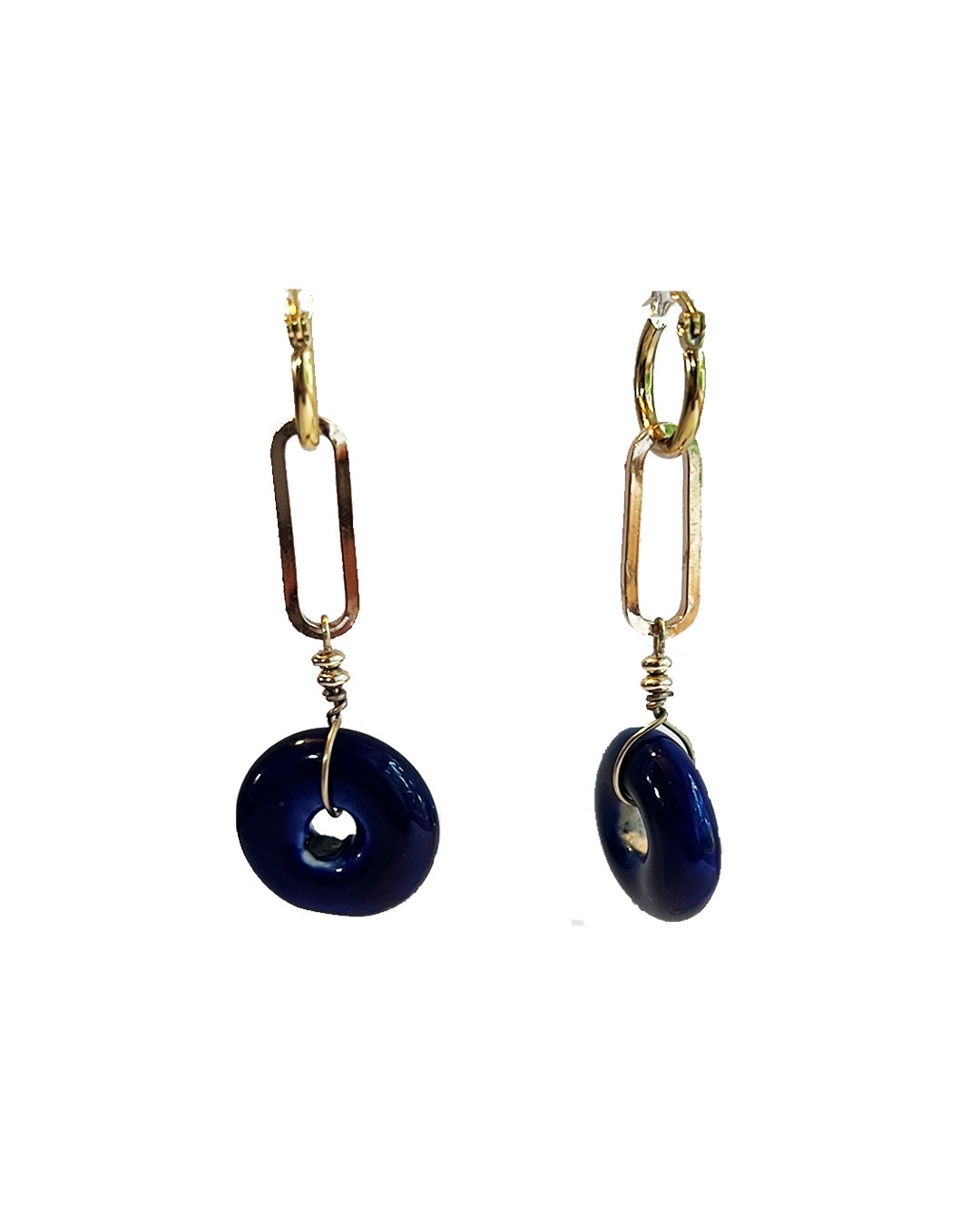 Classic, Elegant, and Easy for everyday wear. 18K Gold Plated, Blue Ceramic Earrings.
