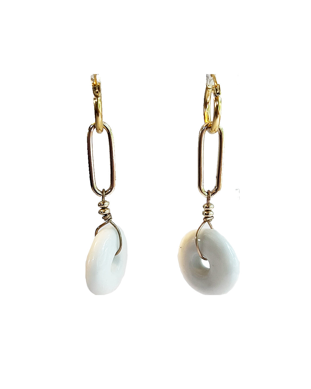Classic, Elegant, and Easy for everyday wear. 18K Gold Plated, White Ceramic Earrings.