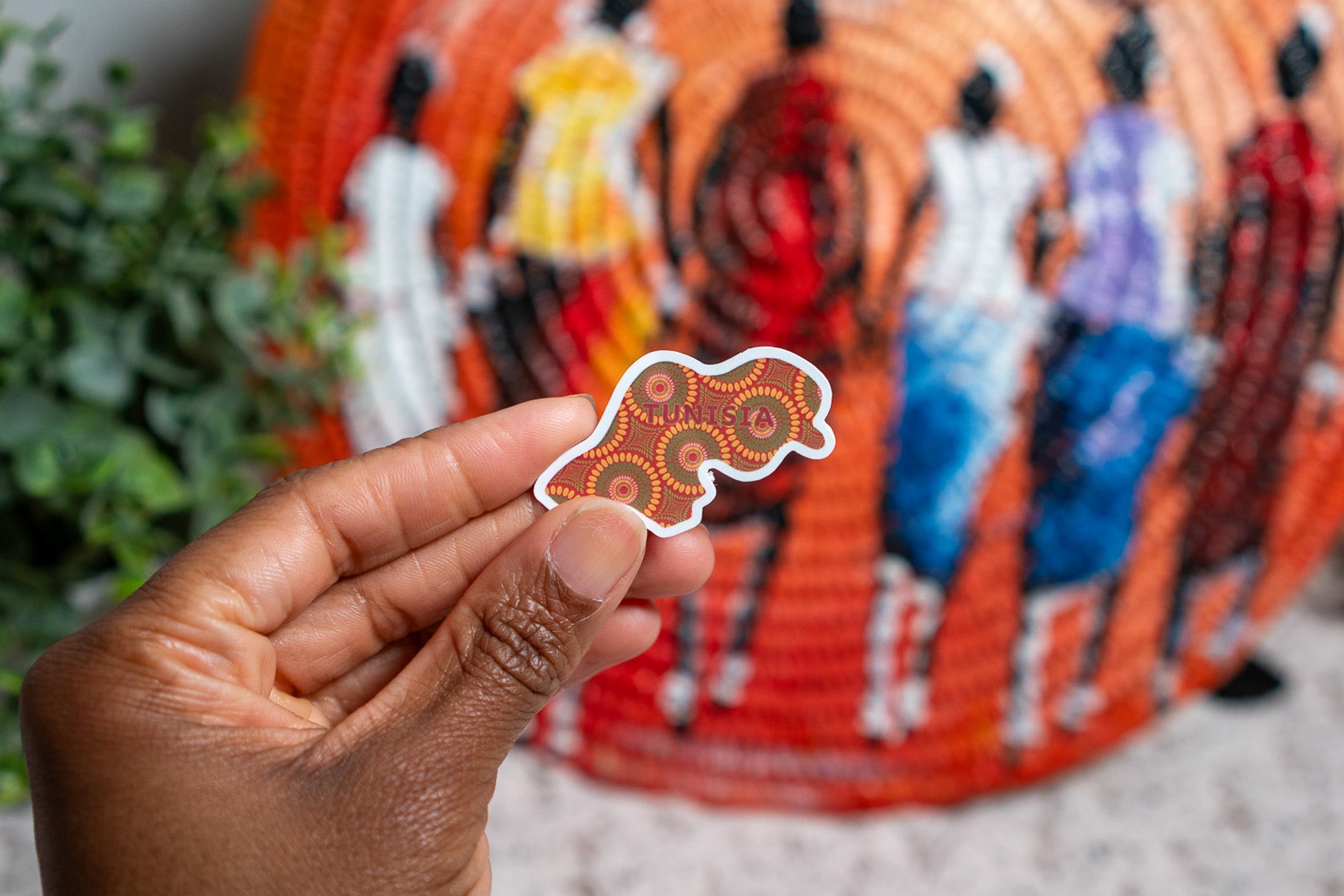 Add a pop of color and culture with our Tunisia Sticker! This die cut sticker, shaped like the African continent, features a unique ankara-inspired pattern. Perfect for personalizing your laptop, water bottle, or any surface in need of some African flair. Celebrate your heritage with our Tunisia Sticker today!