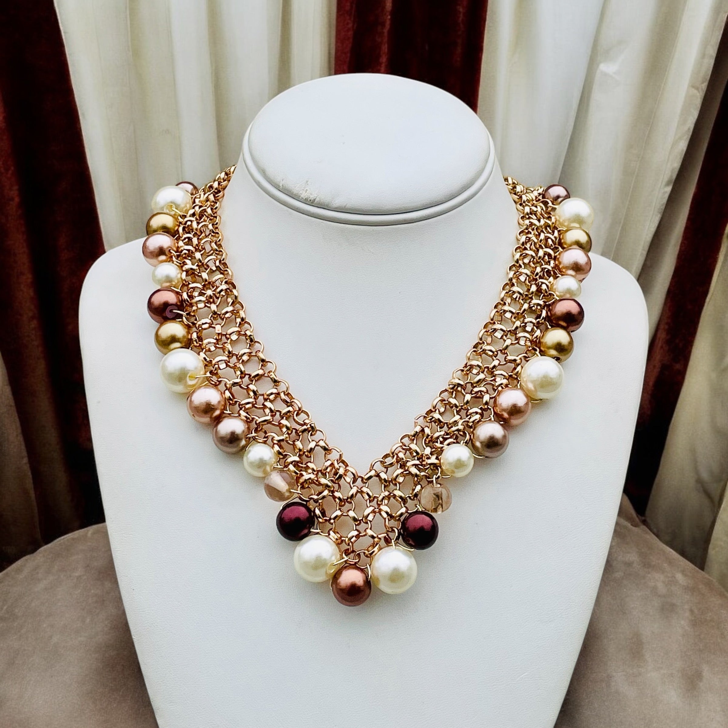 Level up your style with this breathtaking brown and gold beaded wire-wrapped necklace. Each pearl, carefully selected for its lustrous sheen and perfect shape, is lovingly wrapped in delicate wire to create a piece that exudes timeless beauty. The soft contrast between the browns and colored pearls adds an understated sophistication, while the artisanal wire wrapping provides a unique, handcrafted touch that sets this necklace apart.