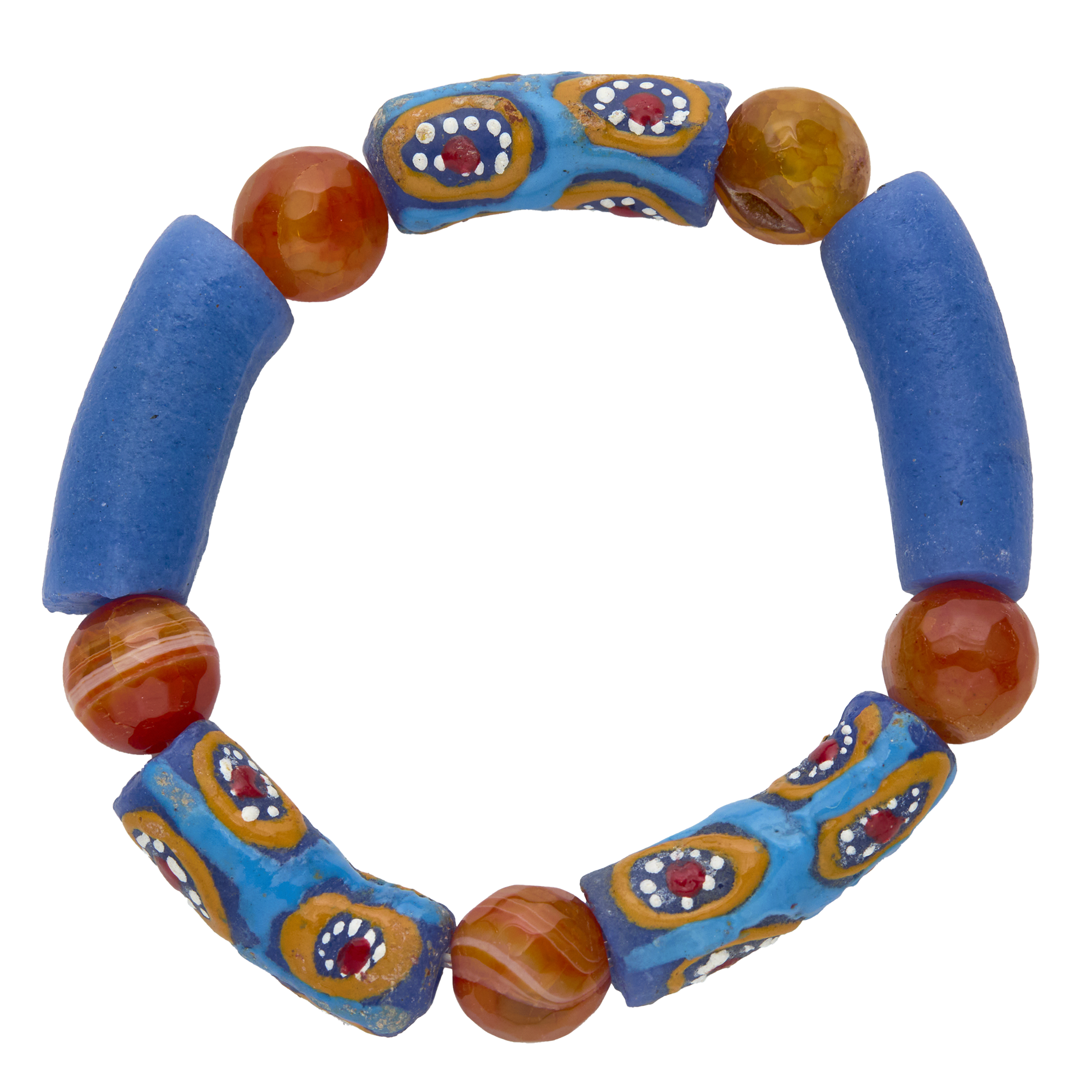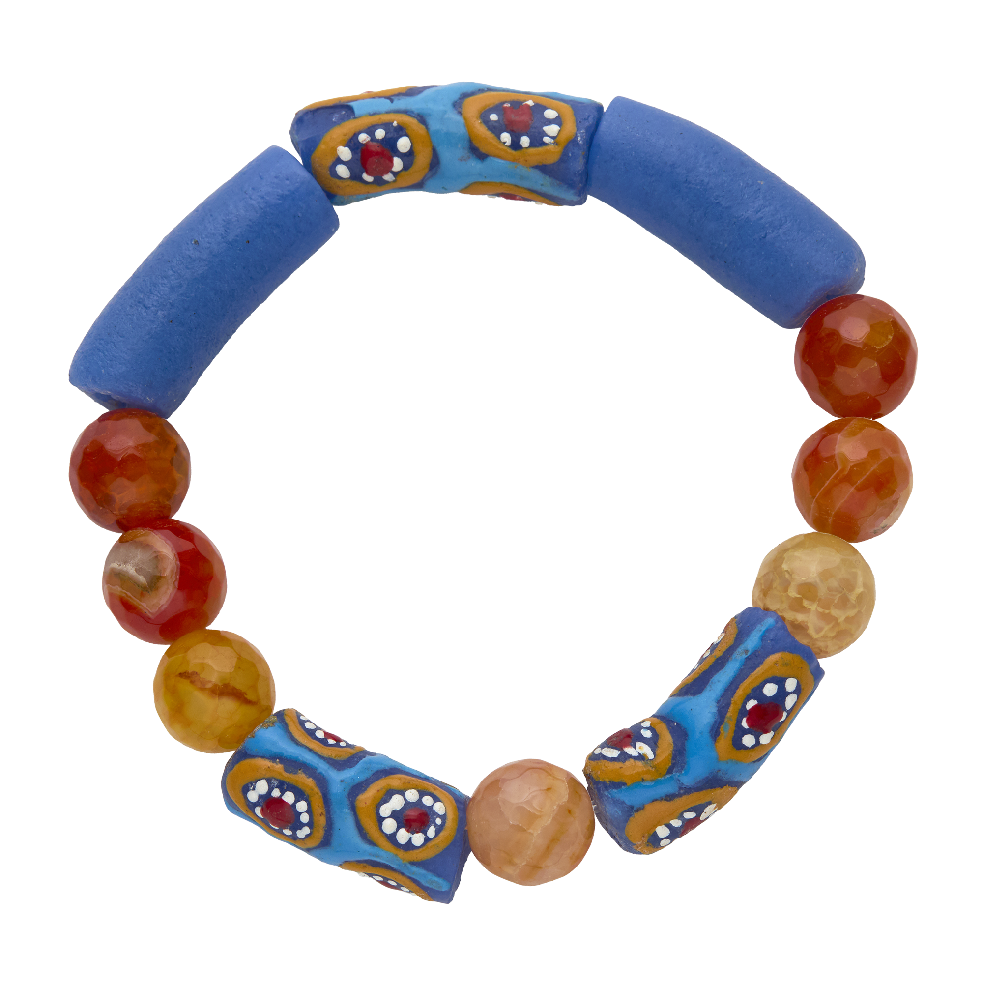 The Ayo bracelet is vibrant, bold, and full of energy. African recycled glass Krobo beads pair with bright orange agate for a striking mix. Joyful yet refined, Ayo brings the colorful spirit of Afro Luxe to your stack.