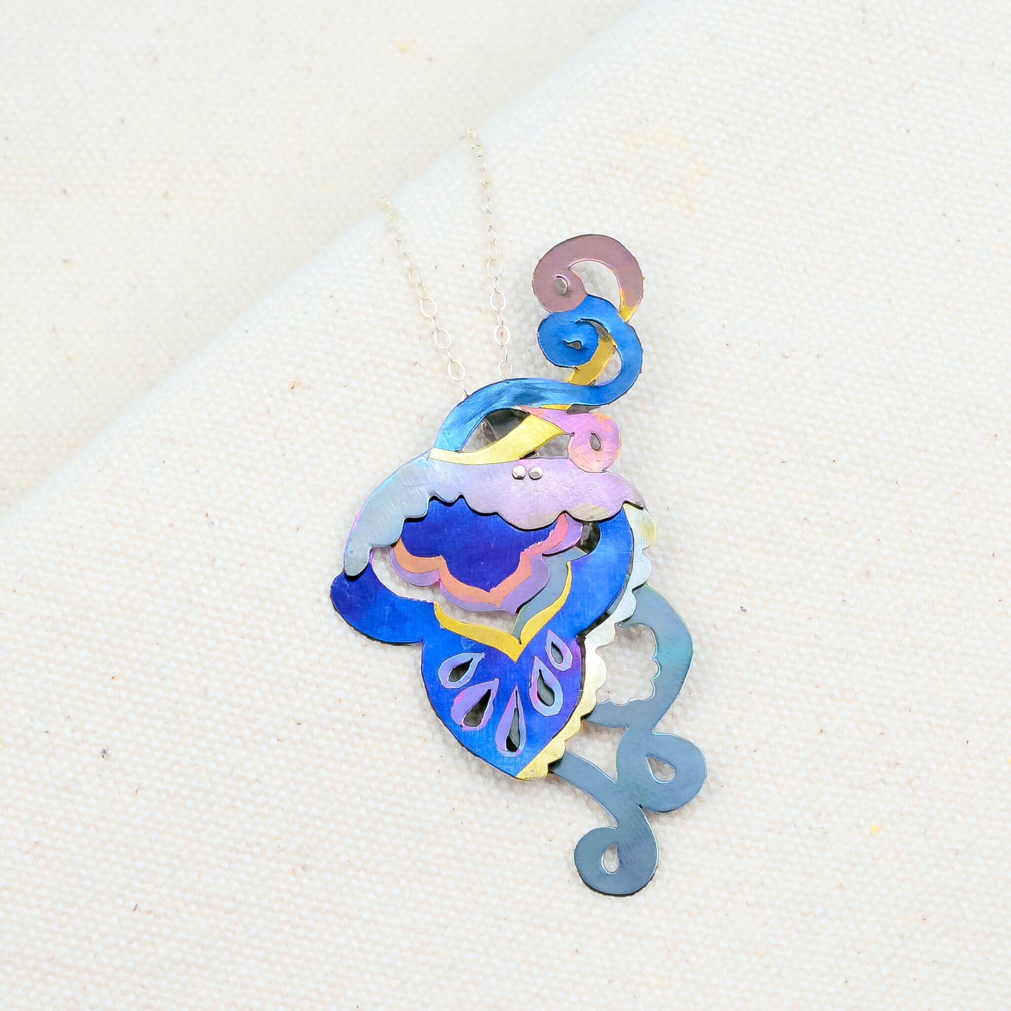 • Hand-painted titanium using a magical technique of creating color by manipulating light